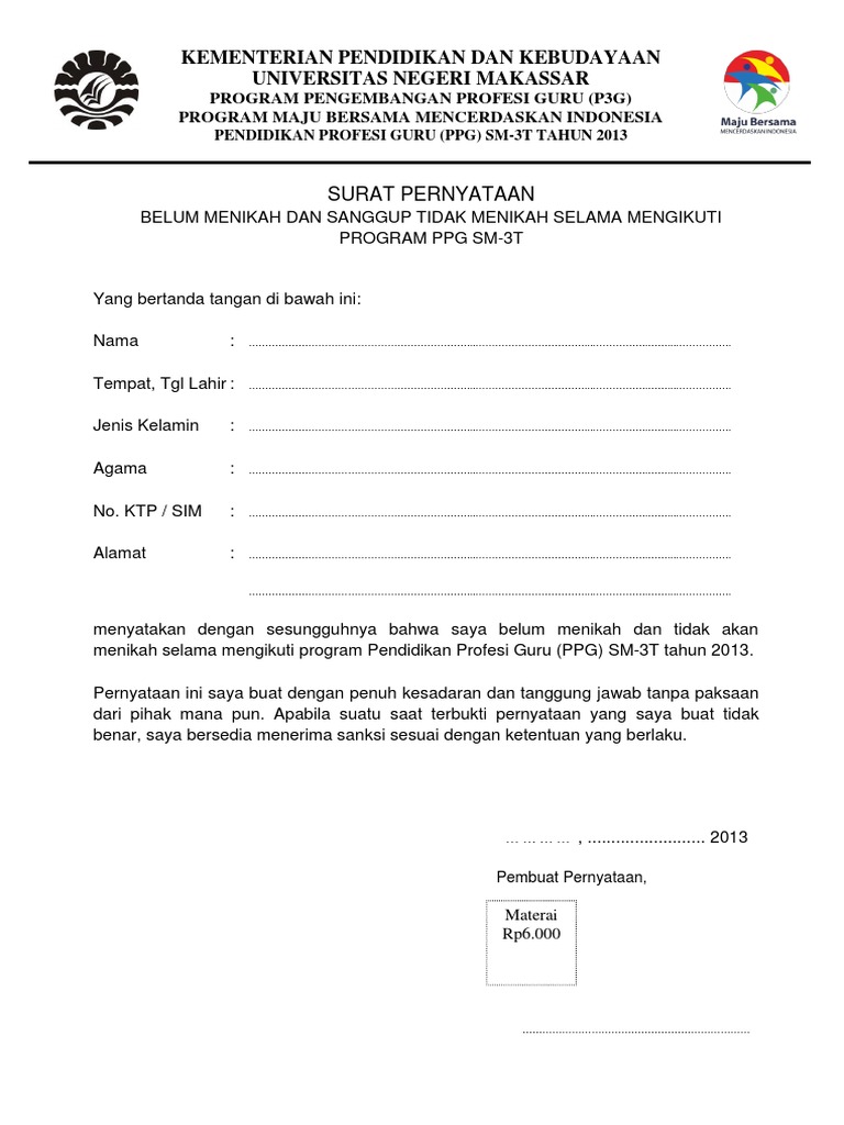 Contoh Surat Pernyataan Sanggup Tidak Menikah Selama ... from gambarstatus.com Surat keterangan belum pernah menikah untuk tes cpns. We did not find results for: Maybe you would like to learn more about one of these? Check spelling or type a new query.